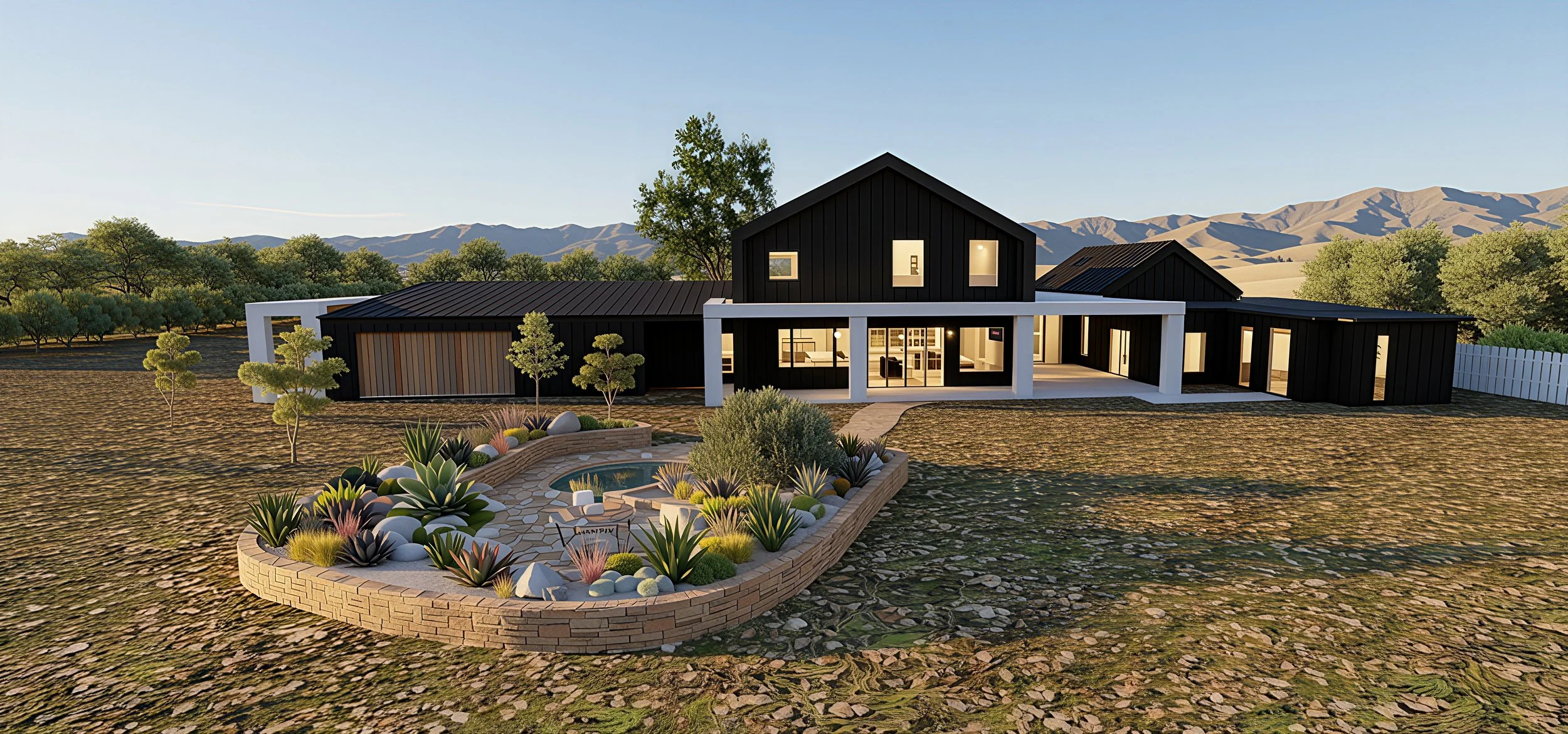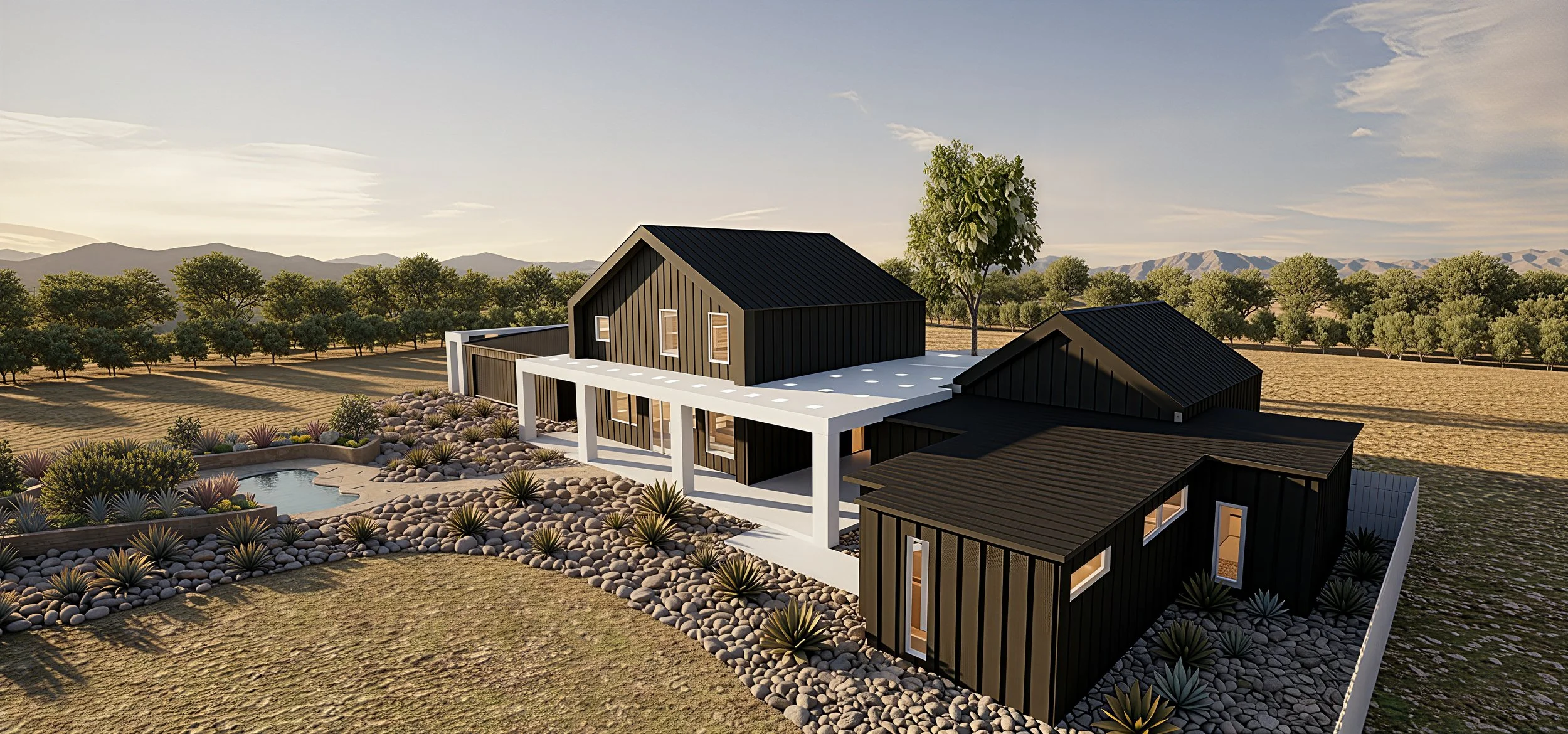 The Horan again features great connectivity to the landscape, especially the back yard and pool. The view from the front is not as good, so we focused our windows and access toward the rear and future pool area.
